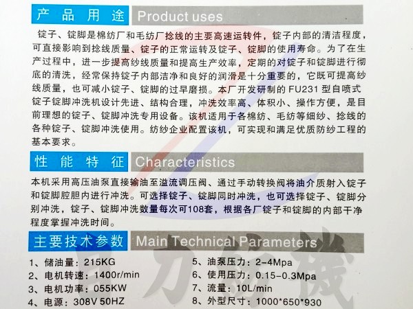 FU231型锭子锭脚冲洗机的产品详细介绍: