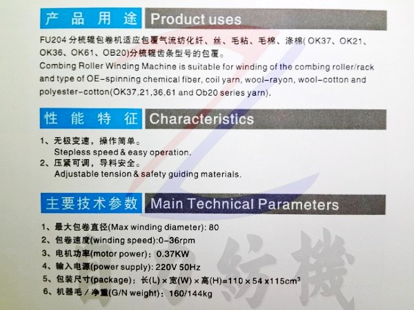 FU204型分梳辊包卷机的产品详细介绍: