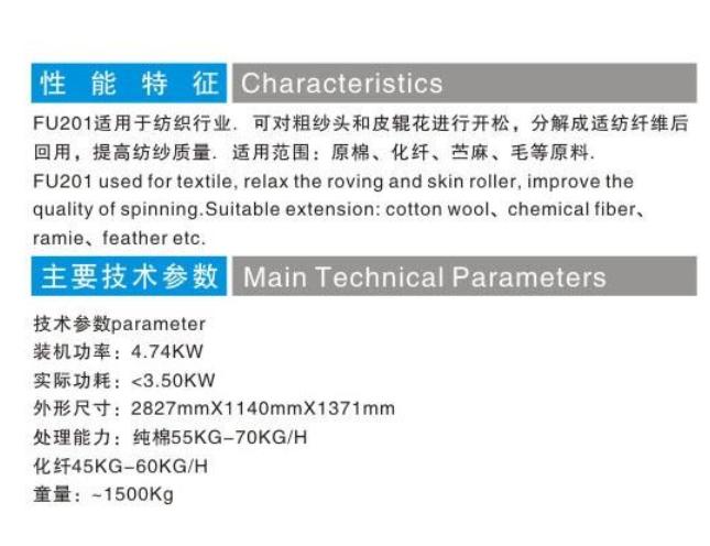 FU201型粗纱头开松机(针板开松)的产品详细介绍: